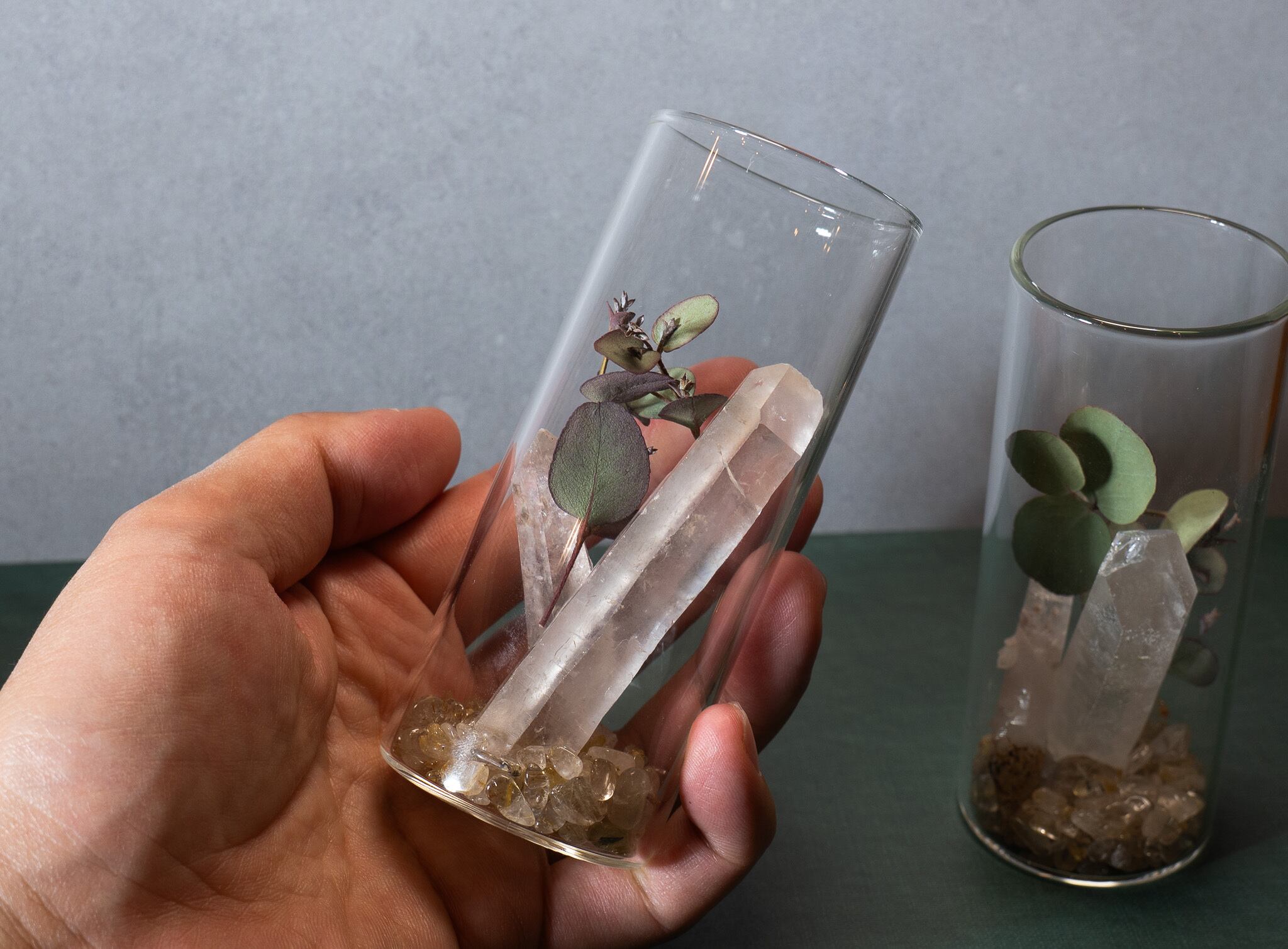 【数量限定】山梨県産水晶 (細長めの石) × ルチルクォーツ浄化セット 1瓶